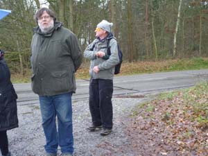 Durch Büchelkühn gingen wir dann in ein Weihergebiet, wo viele Angler ihr Domizil hatten. Kurz vor der B 85 kamen wir dann an unsere restaurierte Gedenksäule vom Wanderprediger Longprigus, der dort am Wassersammelbecken liegt. Erwin Mayer erzählte die Geschichte des Wanderpredigers und der Säule, die ursprünglich zwischen zwei Linden errichtet war und von einem Privatgrundstück aus über die Straße an der jetzigen Stelle, nachdem sie teuer restauriert wurde, hier aufgebaut wurde. Büchelkühn und der OWV Schwandorf finanzierten die Sache.