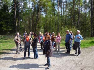 Am Sonntag den 13.04.2014 trafen sich um 14.00 Uhr die Wanderer am Volksfestplatz in großer Anzahl. Eine ebenso große Anzahl von Pkws fuhren dann zum Ausgamgspunkt der Wanderung nach Gögglbach, wo weitere Wanderer hinzustießen. Am Schluss waren es über 40 Wanderer, die am Palmsonntag bei herrlichem Wetter den Panoramaweg entlanggingen.Der Weg ging durch den Wald, durch wunderschöne Sandsteinfelsen, wo sich in luftiger Höhe Bäume und Büsche festhielten. Es war gar nicht richtig auszumachen, wer wen hält. Die Wurzeln der Bäume die Felsen oder umgekehrt. Es sah richtig bedrohlich aus und man konnte sich ausmalen, dass diese in nächster Zeit herunterstürzen. Der Sand am Weg zeugte von der Auswaschung dieser Sandsteinfelsen.