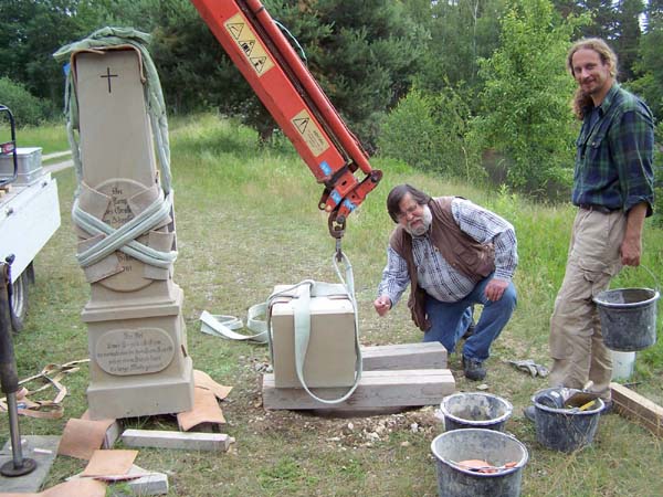 Der Restaurator brachte die Säule am Freitag den 10.06.11 und befestigte sie an unserem vorgefertigten Fundament.