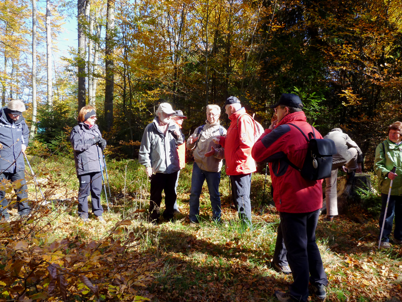Bei schönsten Sonnenwetter fuhr der OWV Schwandorf mit Dieter Kreuzwieser und voll besetzten Bus in den Bayerischen Wald. Herrliche Landschaften konnte man bereits während der Busfahrt bestaunen. Trotz des sonnigen Wetters blies ein eiskalter Wind, der vermutlich schon baldigen Schnee ankündigt. Die Bilder zeigen einen goldenen, sonnigen Herbst. Die Natur zeigt sich zu dieser Zeit von seiner schönsten Seite. Der Aufstieg zum Berghaus Hohenbogen hat sich gelohnt. Vom Gipfelkreuz aus hatte man einen großartigen Blick ins Tal. Der folgende Abstieg ging dann zum "Schönblick". Hier hatte man ebenfalls einen guten Blick ins Tal, aber mit breiterem Panorama. Dort wurde auch zu Mittag gegessen. Auch eine zünftige Musik spielte im Stüberl nebenan. Nach dem Mittagessen trennte sich die Gruppe. Die Gruppe mit dem leichteren Weg, die direkt zum Bus führen sollte, mußte bald feststellen, dass der Weg doch etwas länger und beschwerlicher wie beschrieben war. Dieter Kreuzwieser mußte mit seinem Bus vom eigentlichen Treffpunkt wegfahren, da immer mehr Pkws dort parkten und es dem Bus unmöglich war, noch zu wenden. Er konnte nur noch rückwärts die einige Kliometer lange und enge Straße mit Ausweichen hinunterfahren. So mußte auch dieses Stück steile Straße zusätzlich zu Fuß bewältigt werden. Die andere Gruppe mit dem steileren Weg konnte sich derweilen in einem Biergarten niederlassen, bis der Bus mit der ersten Gruppe kam. Danach fuhr man nach Neukirchen beim Hl. Blut, wo die Kirche besichtigt wurde. Zum Abendessen wurde noch Halt in Neubäu gemacht und dann die Heimreise angetreten. Trotz der Anstrengungen war es ein schöner Ausflug, an dem man lange denken wird.