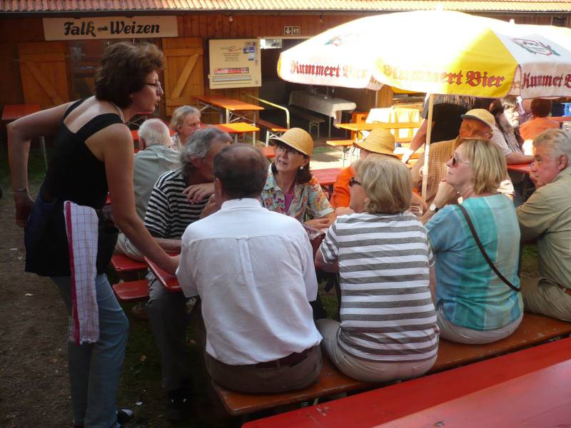 Die Eslarner Freunde haben uns zu sich eingeladen und wir sind gekommen. Es war ein sehr entspannter Ausflug, da das Programm der Zweigverein Eslarn gestaltete, und das nicht schlecht. In Eslarn angekommen besuchten wir das Kommunbrauhaus. Ein über 80jähriger Mann, dessen Alter ihn man nicht anmerkte, erzählte wie früher und auch noch heute dort gebraut wird. Das Bier wird dann in Containern abgeholt und dann erst wird gegärt. Brotzeit machten wir im dortigen Vereinsheim, wo wunderbar ein Park und ein Vogelpark angegliedert war. Die Wanderiung führte ein junger Förster, der uns manches über die dortige Botanik erzählte. Wir wanderten bergauf durch einen geschützten Wald, ein Projekt, daß gefördert wird. Hier darf kein Forstbetrieb stattfinden. Man will erforschen, wie es ist, wenn man den Wald sich selber überläßt. Dann wird es . Das schlechte daran ist, daß hier keine Gebäude stehen müssen. So wird ein Idyllisch am Weiher gelegenes Holzhaus wahrscheinlich den Projekt zum Opfer fallen. Weiter ging es dann auf einen Vereinseigenen 34 m hohen Aussichtsturm. Die Kanzel ist geschlossen. Man hat einen weiten Blick, aber es war dort so heiß wie in einer Sauna. Nachdem wir wieder den Berg hinabstiegen, besuchten wir noch einen Wildpark. Der Ausklang fand in einer Zoiglstubn statt. Dort wurden wir sehr gut bewirtet. Zwei Quetschnspieler rundeten den Abend mit Musik, Gesang und Witzen ab. So war es ein sehr schöner Jahresausflug.